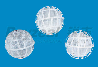 該水處理填料采用聚丙烯塑料制成球狀,在球中部沿整個周長有一道加固環(huán),環(huán)的上下各有十二片球瓣,沿中心軸呈放射形布置,適用于二氯化碳脫氣塔,接觸反應塔等裝置。