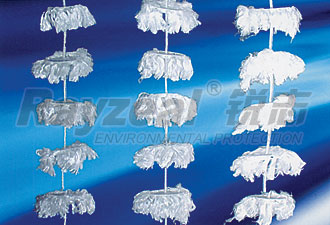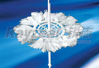 改型軟性水處理填料采用紡搓地纖維繩串連壓有纖維絲均勻分布地塑料圓片,組成一定長度地單元纖維束,改變和克服了原來的中心繩散絲打結、抗拉力不均勻、運轉時易斷、纖維絲在水中難以橫向展開、分布不勻、偏向、生物膜結團、實際比表面積低、使用壽命短等弊病。經(jīng)有關部門測定,改型后的軟性水處理填料比原來的利用率提高一倍。組裝方便等優(yōu)點。